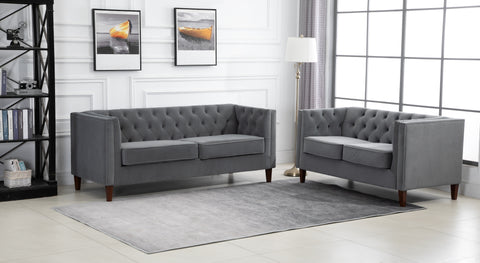 Our newest range Pisa is upholstered in a luxuriously grey velvet fabric with classic Chesterfield-style button tufting and sumptuous deep foam-filled seats.