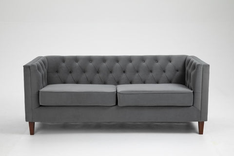 Our newest range Pisa is upholstered in a luxuriously grey velvet fabric with classic Chesterfield-style button tufting and sumptuous deep foam-filled seats.