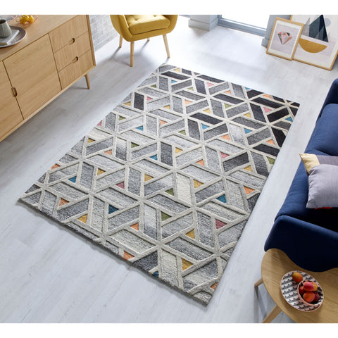 The gradual ombre effect of this rug is paired with pops of bright colours to add a unique contemporary twist to your floors, the high and low effect of the pile adds shadow and light to the design. The 100% wool pile can bring sound insulating qualities to those homes with hard flooring. An ideal rug to bring warmth and softess to a room without losing out on modern design.
