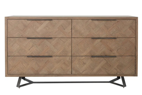 This stunning Ibis collection features a hand-designed parquet inlay on cabinet fronts and the aged grey oak finish allows the beauty of the wood to shine through, it is paired with discrete top-mounted handles and modern angled metal legs both in gunmetal grey. This collection benefits from quality elements such as metal drawer