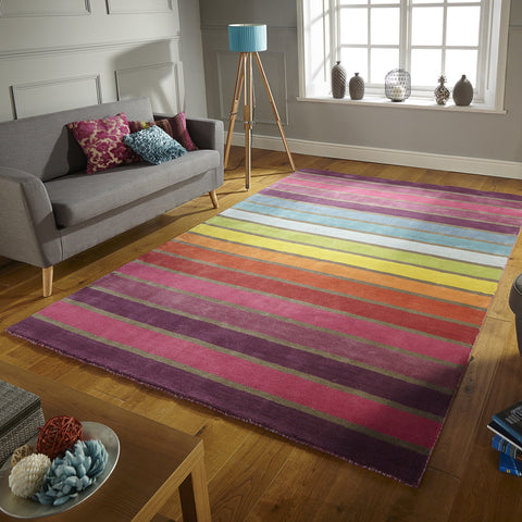 Keymsam is filled with vibrant rich colours combined with artistic geometric designs to create art for your floor. This design is warm and soft to the touch in 100% wool and finished by hand. Ideal for any room in your home.