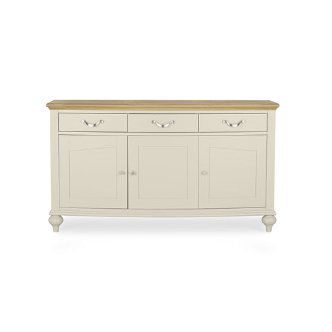 With drama and sophistication in abundance, Marseilles in Oak & Antique White boasts beautiful form by way of serpentine framed tops, gently bow-fronted cabinet & classically styled turned legs. Bespoke handles, intricate oak marquetry tops and large roll back upholstered chairs all add to the uncompromising design detail which together with the combination of striking grey washed oak tops contrasting with soft grey pigment frames will ensure this range makes a striking statement in any home.